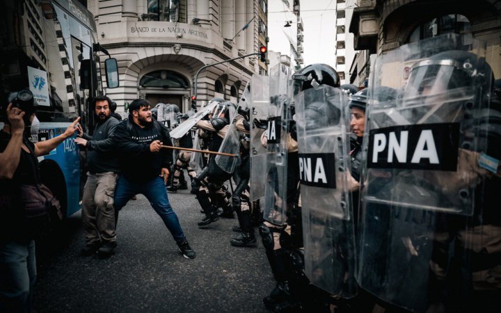 У Буенос-Айресі протестувальники атакували поліцейські кордони біля будівлі парламенту, де розглядалося питання підвищення соціальних виплат.