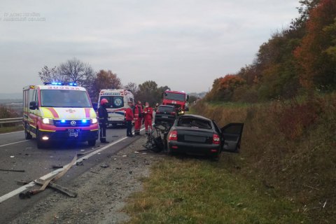 Внаслідок зіткнення водій та пасажир “Lada Priora” загинули на місці події. Рятувальники за допомогою електричного розтискача деблокували тіла загиблих із понівечених конструкцій автомобіля.