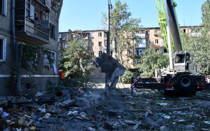 Близько 06:30 унаслідок ракетного обстрілу сталося влучання в п’ятиповерховий житловий з подальшим руйнуванням з третього по п’ятий поверхи. Також зруйновано близько 10 приватних гаражів.