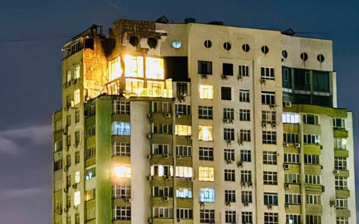 У Києві внаслідокнічної атаки росіян “шахедами”пошкоджено багатоповерхівку в Солом’янському районі. Виникло загорання на верхніх поверхах, в трьох квартирах часткове руйнування стін та ще у трьох – вибиті вікна.