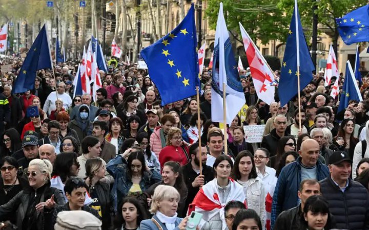 Як пише Deutsche Welle, гаслом протесту стали слова “Ні російському закону, так Європі”. Чимало людей вийшли на акцію з прапорами Євросоюзу. До маршу приєдналися опозиційні політики, громадські організації та представники сфери культури.