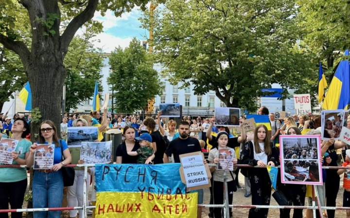 У Берліні ввечері 8 липня активісти громадянської організації “Віче” зібрали мітинг з вимогою до німецької влади надати Україні далекобійні ракети Taurus у відповідь на вбивство росіянами українських дітей.