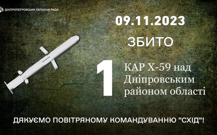 Цієї ночіСили оборонизбили керовану авіаційну ракету Х-59 над Дніпровським райономДніпропетровської області.