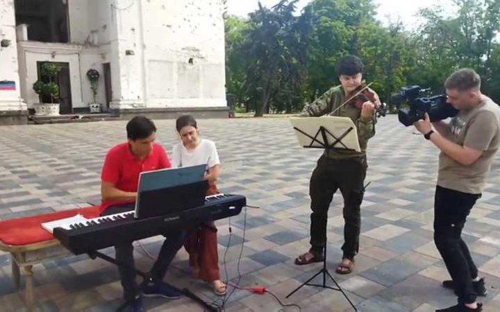 У 2022 році Олександр Романовський грав перед зруйнованим драмтеатром в тимчасово окупованому Росією Маріуполі.