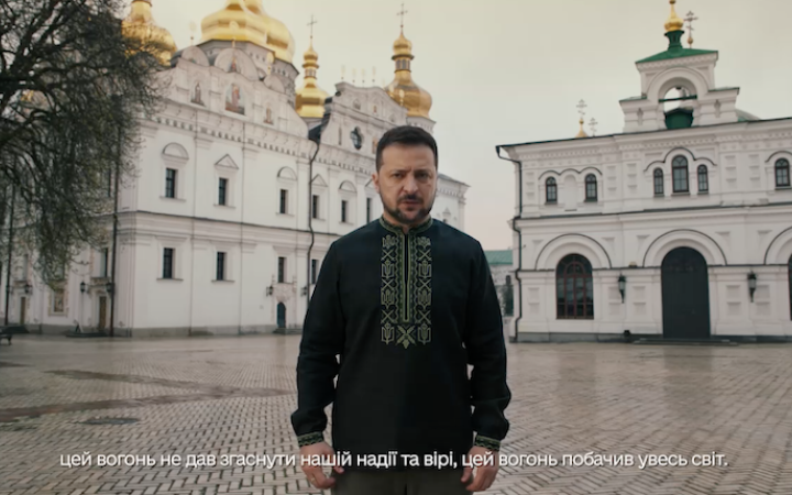 ПрезидентВолодимир Зеленськийпривітав українців з Великоднем. Відеозвернення він записав на території Києво-Печерської Лаври, яка вийшла з підпорядкування Московському патріархату.